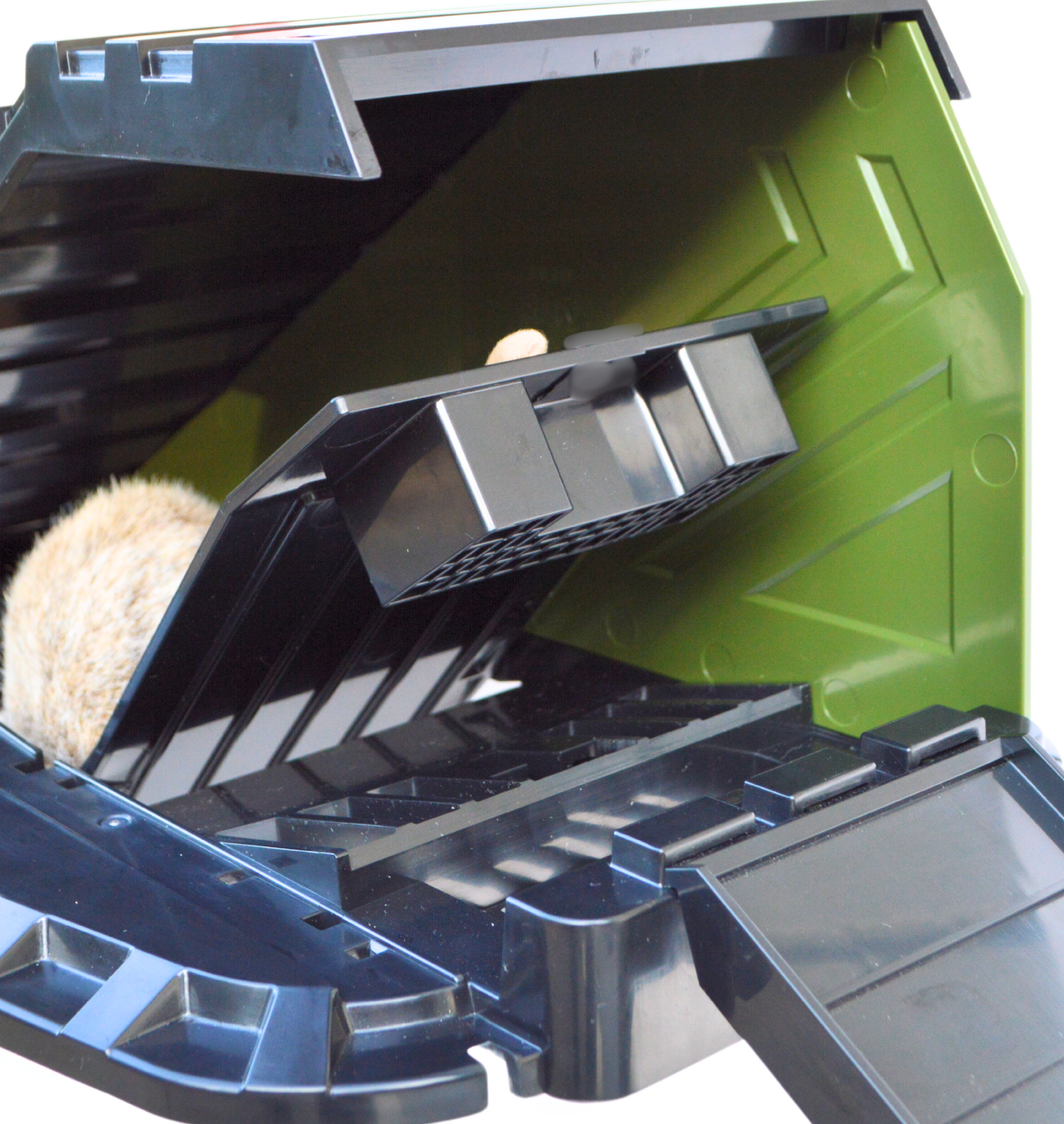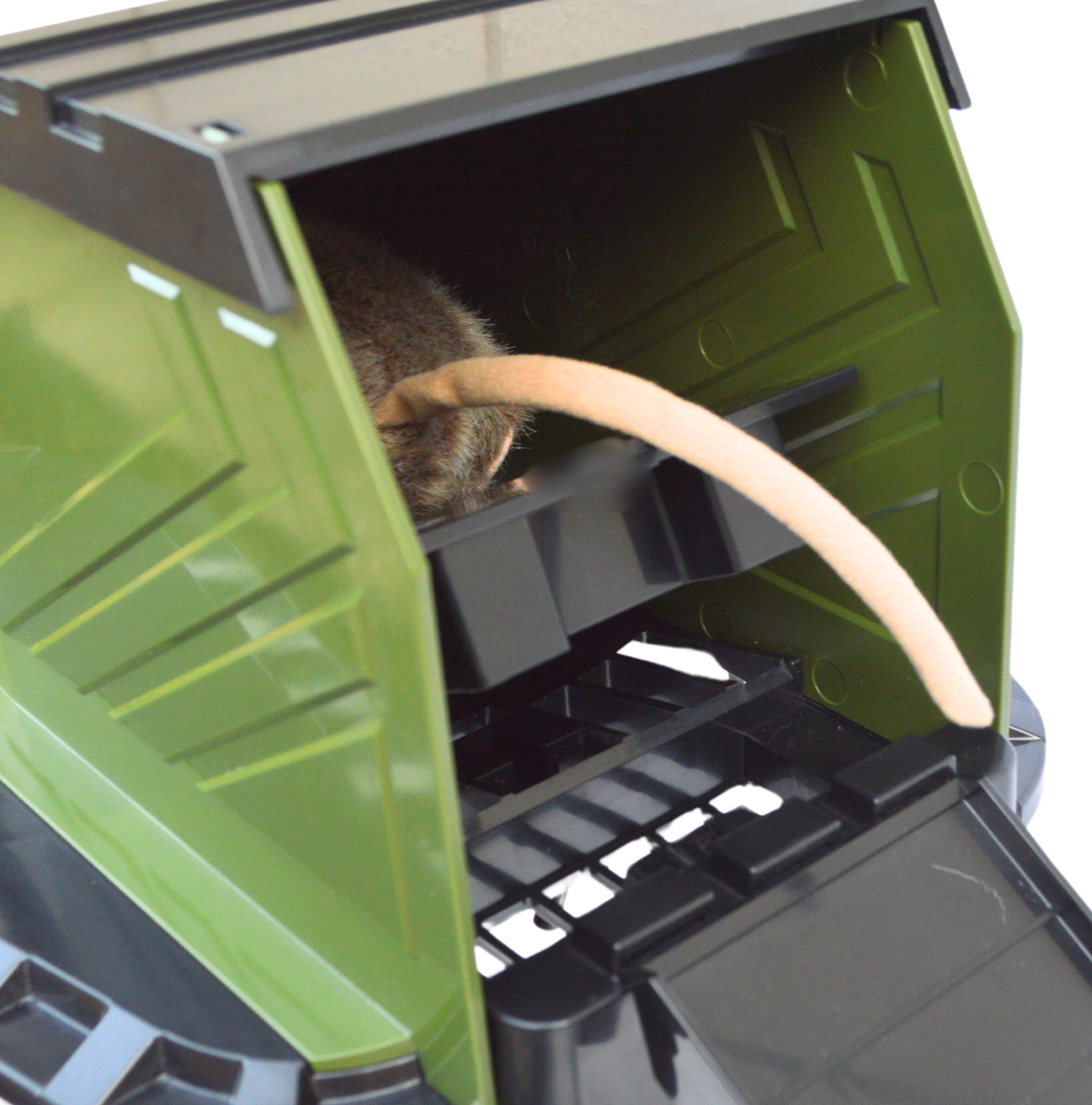 Trigger Activation: As rodents move over the trigger plank, it activates and rotates, safely capturing them in the bucket.